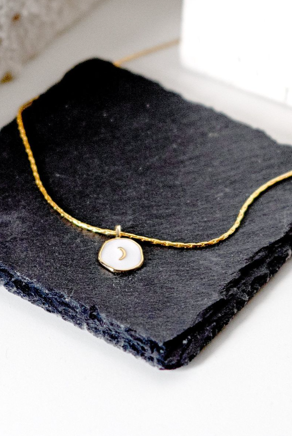 MOON NECKLACE - adjustable 24k gold plated snake chain (14"-17") 24k gold lunar moon and frame enamel fill made in the USA with materials ethically sourced