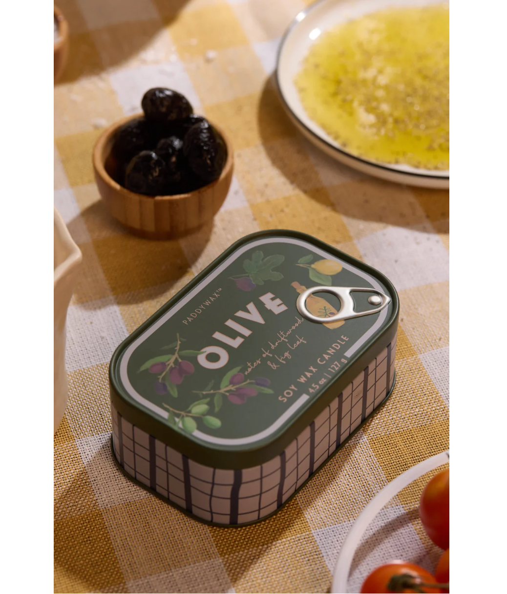 4.5 oz. Two-Wick Tin Candles | With a faux pull-tab for added character inspired by sardine tins, these tin candles with hand illustrated artwork offer a cozy glow with its two wicks, and a comforting scent.