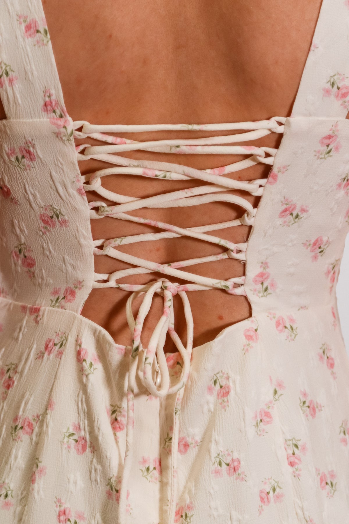 Get ready for a tea party in our "Time For Tea" floral dress! This maxi dress features a delightful print of roses and a playful lace up design on the back. Perfect for any occasion, you'll look as charming as can be!