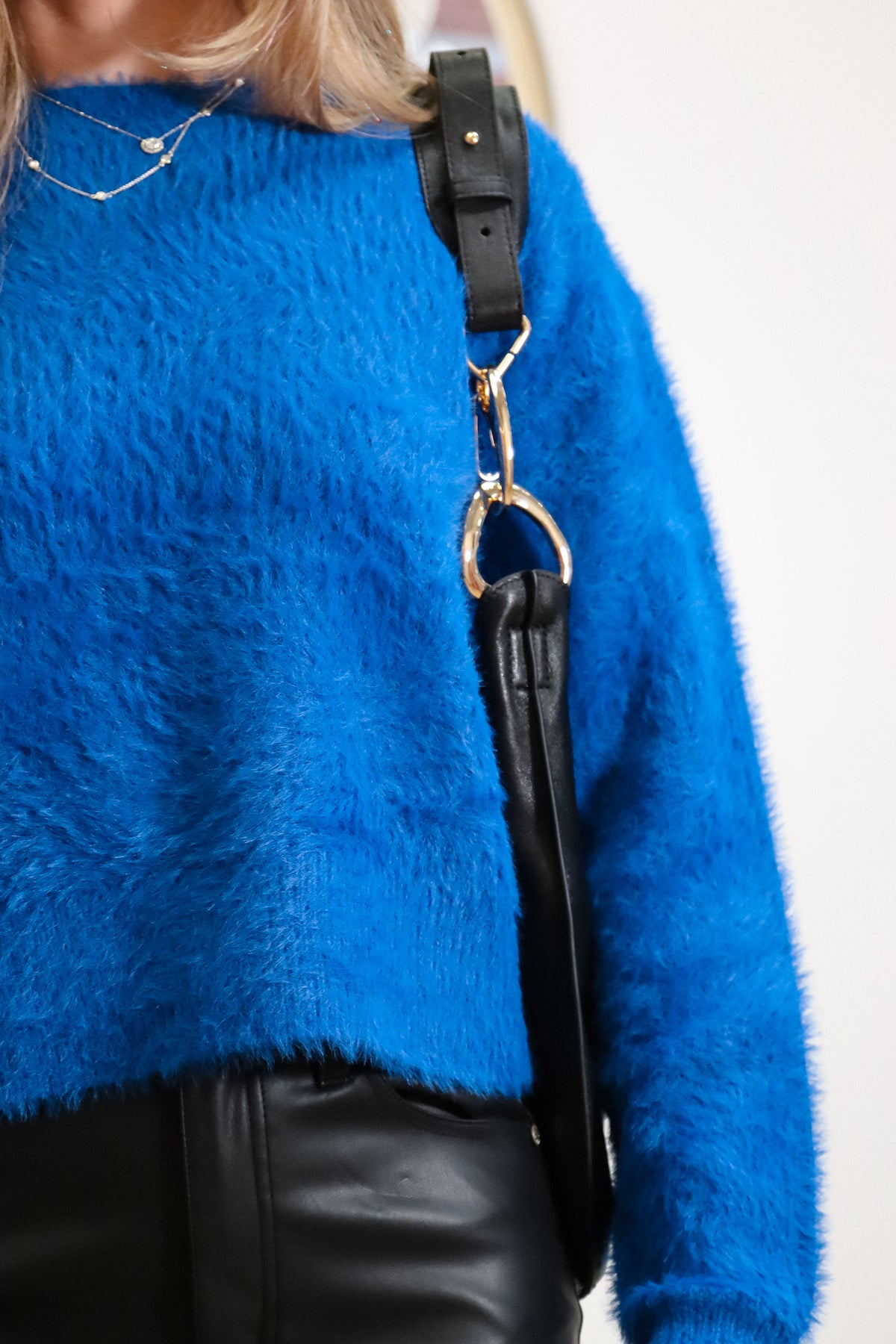 Fuzz Cobalt Crewneck Eyelash Sweater