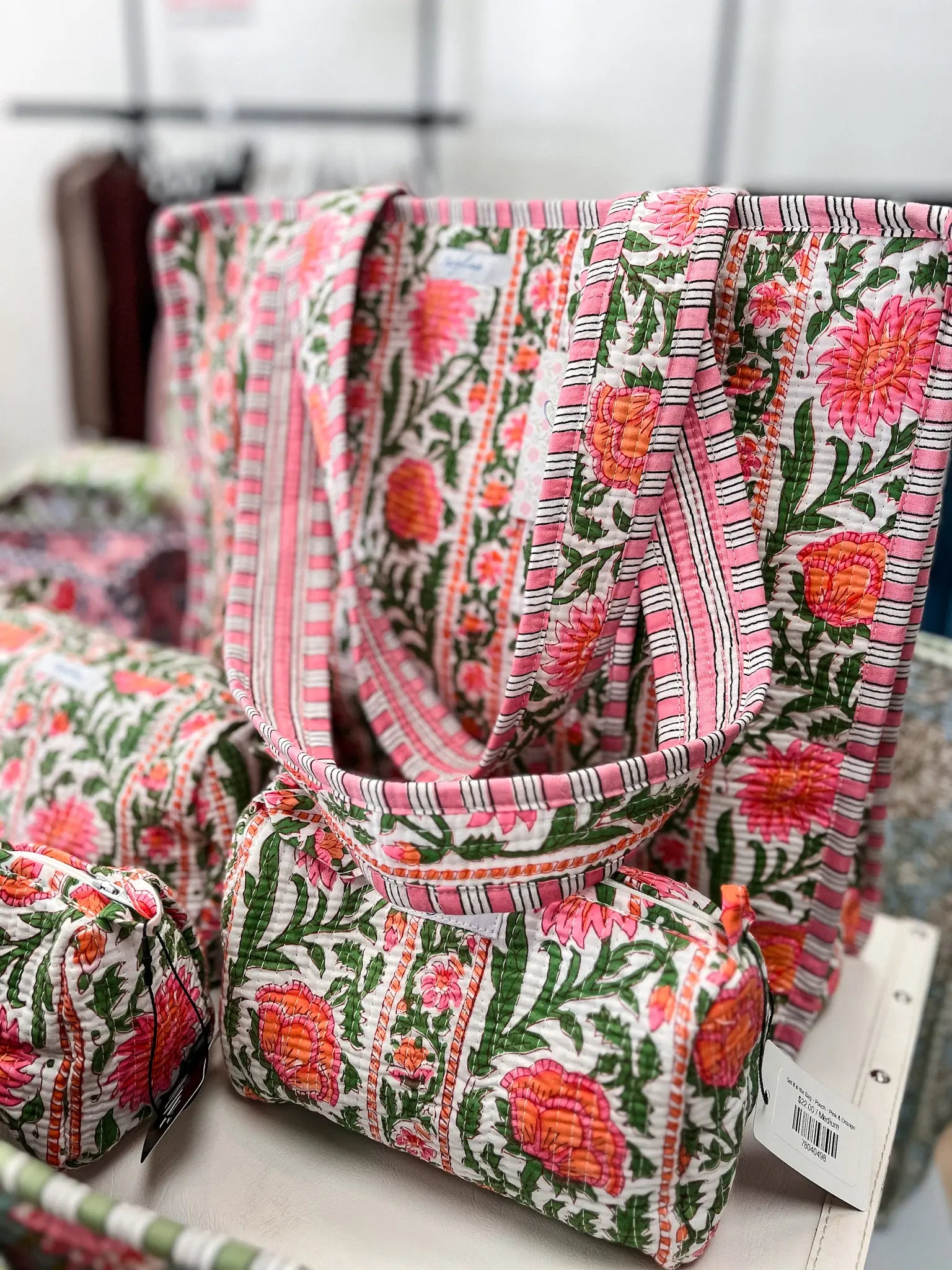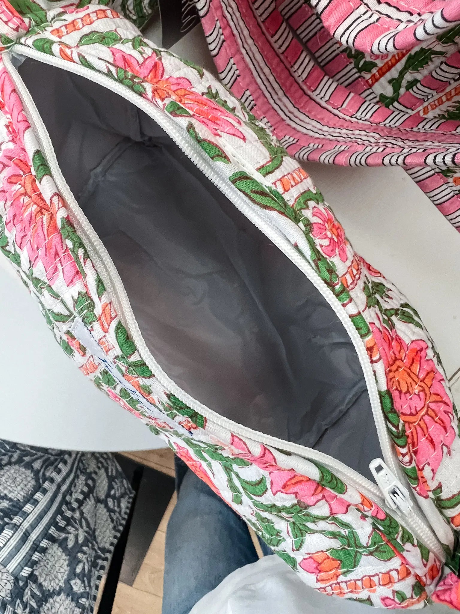 Keep all of your cosmetics organized and easily accessible with our Pink Bold Quilted Pouch. Designed to fit seamlessly into your purse or tote bag, this small pouch is perfect for all your travel needs. The waterproof interior lining ensures that your belongings stay safe and secure.