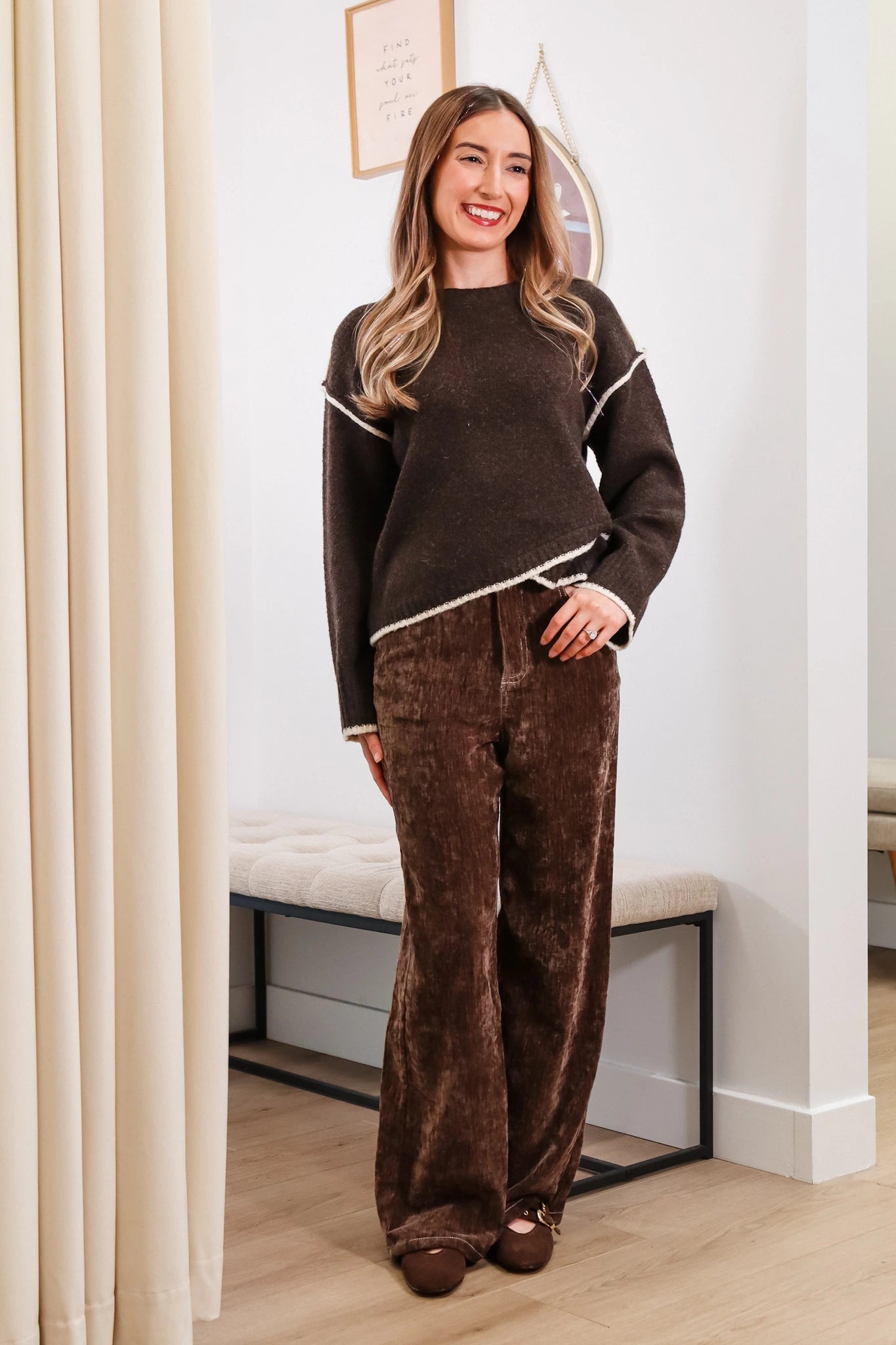 Your new go-to sweater just dropped at Margo, and we couldn't be more excited. This sweater is the definition of fall: it's cute, comfortable, and will go with anything. Its white line details on the sleeves and bottom of the sweater help level up any outfit. Pair it with Rowdy Velour Pants and boots for a stylish yet simple look.