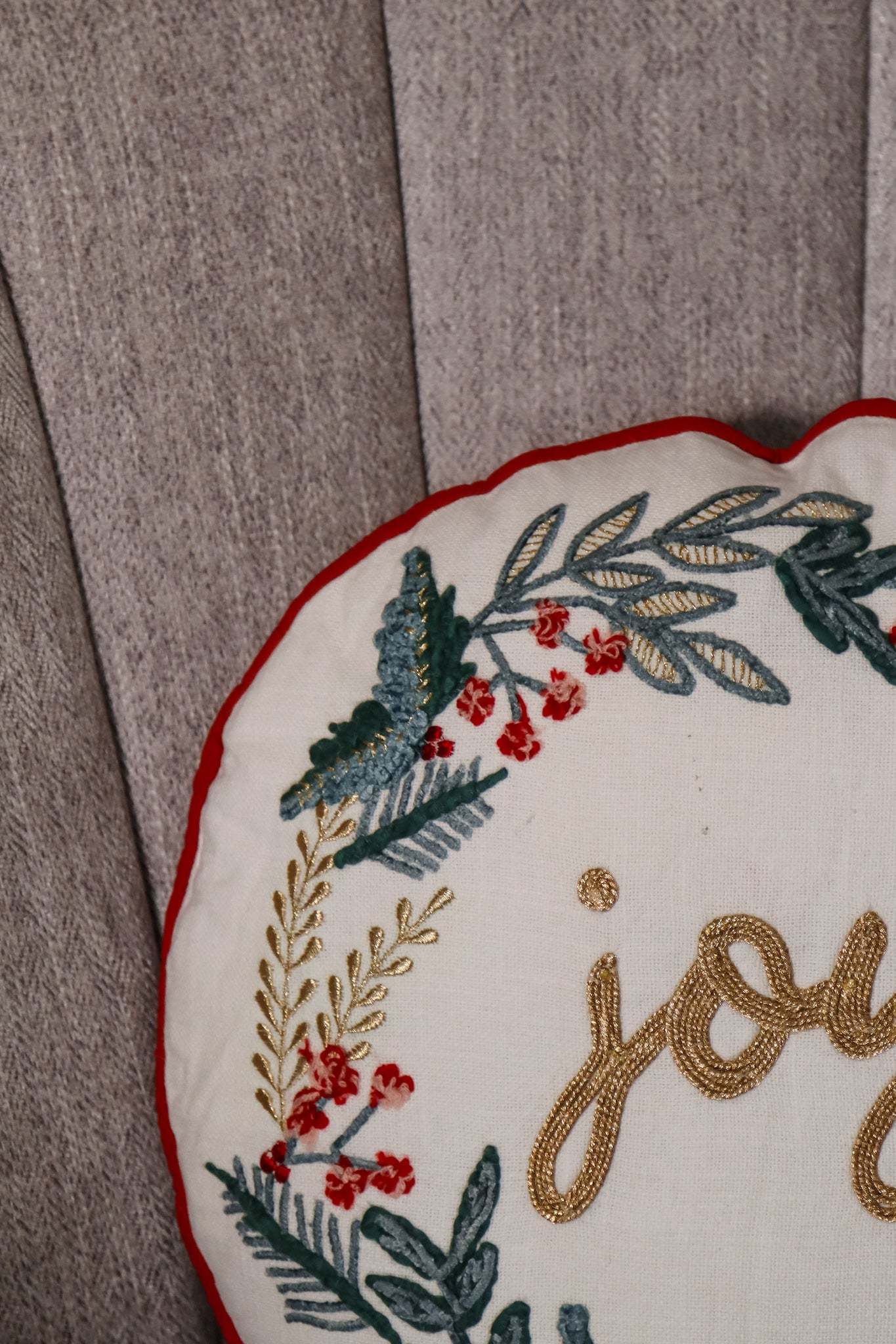 Need a cute yet non-basic holiday throw pillow? We have just the thing for you: our new Festive Joy pillow. Its embroidered design and round shape add cozy vibes to any room. This pillow also has a zipper, allowing you to wash it.