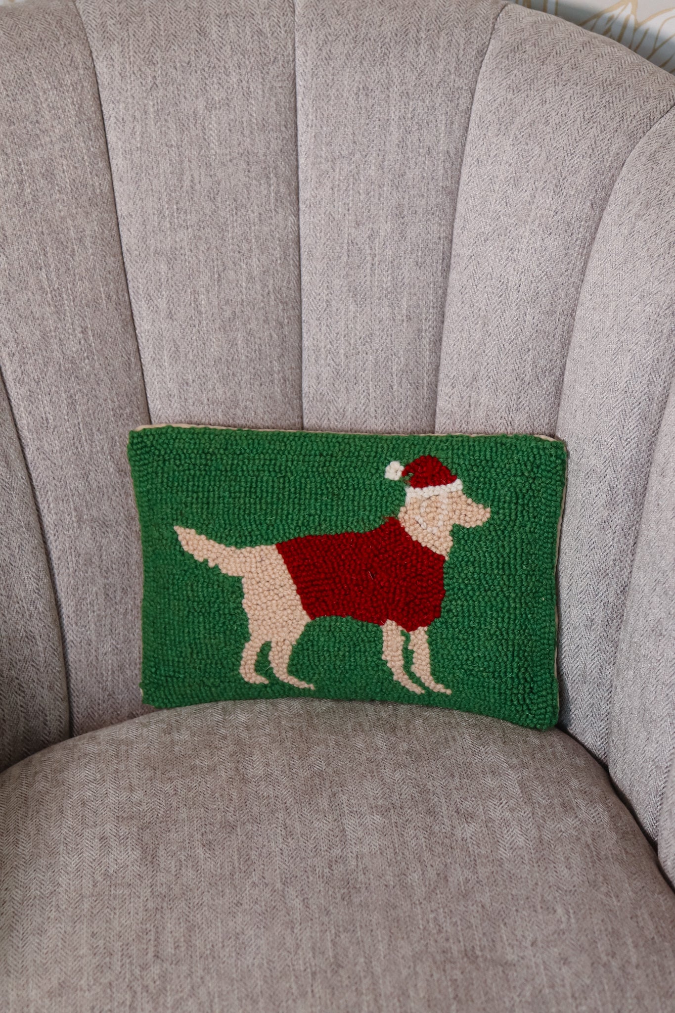 Calling all Golden Retriever lovers, we have the pillow for you! This embroidered holiday pillow adds a touch of fun into the room it's in. Its Christmas colors make it perfect for the holiday season. This pillow also has a zipper, allowing you to wash it.