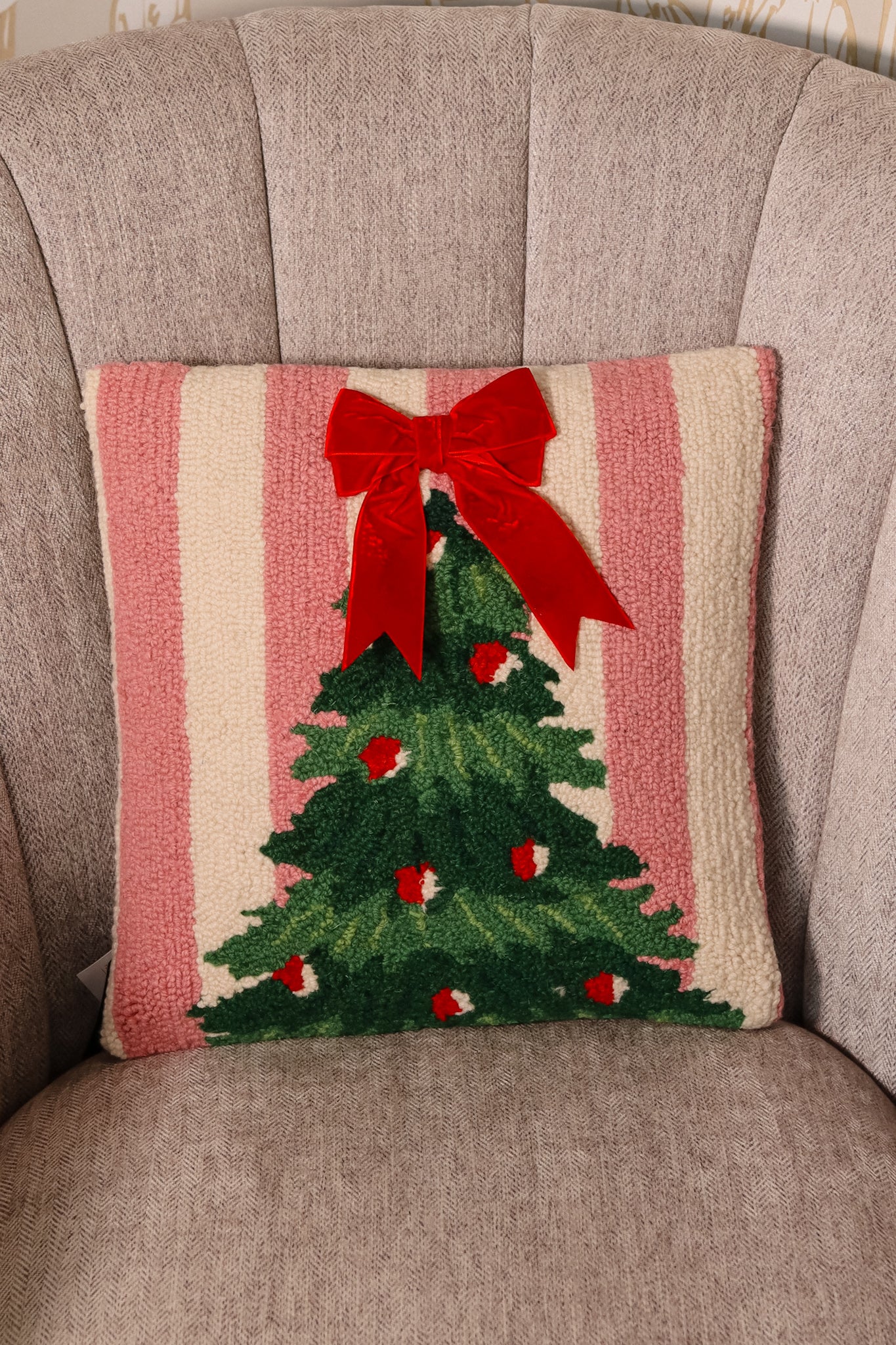 Do you want to spice up your home for the holidays? We have just the thing for you. This embroidered Pink Stripe Tree pillow is perfect for the occasion. It adds the perfect touch of holiday spirit, but not overly dramatic. This pillow also has a zipper, allowing you to wash it.