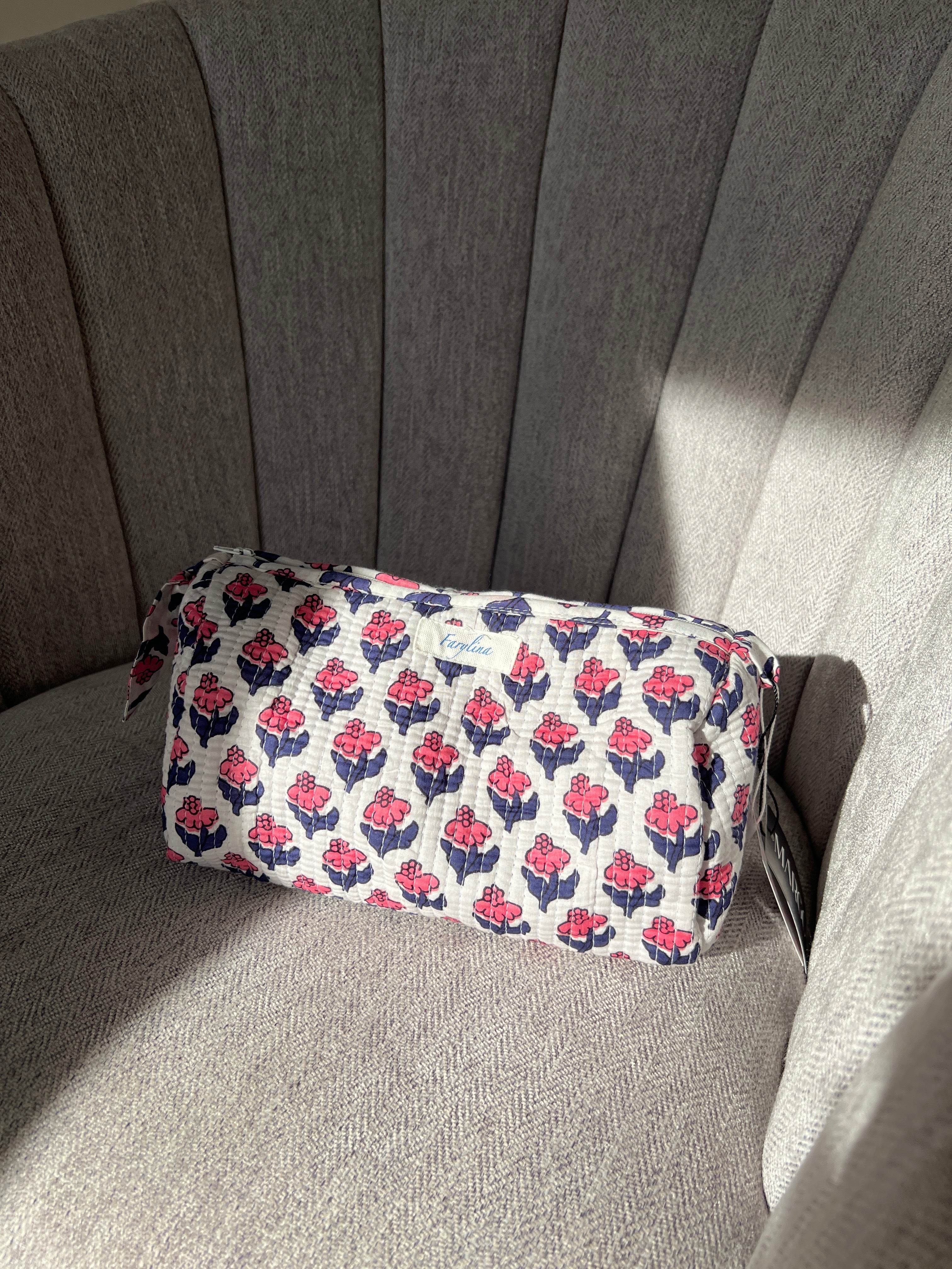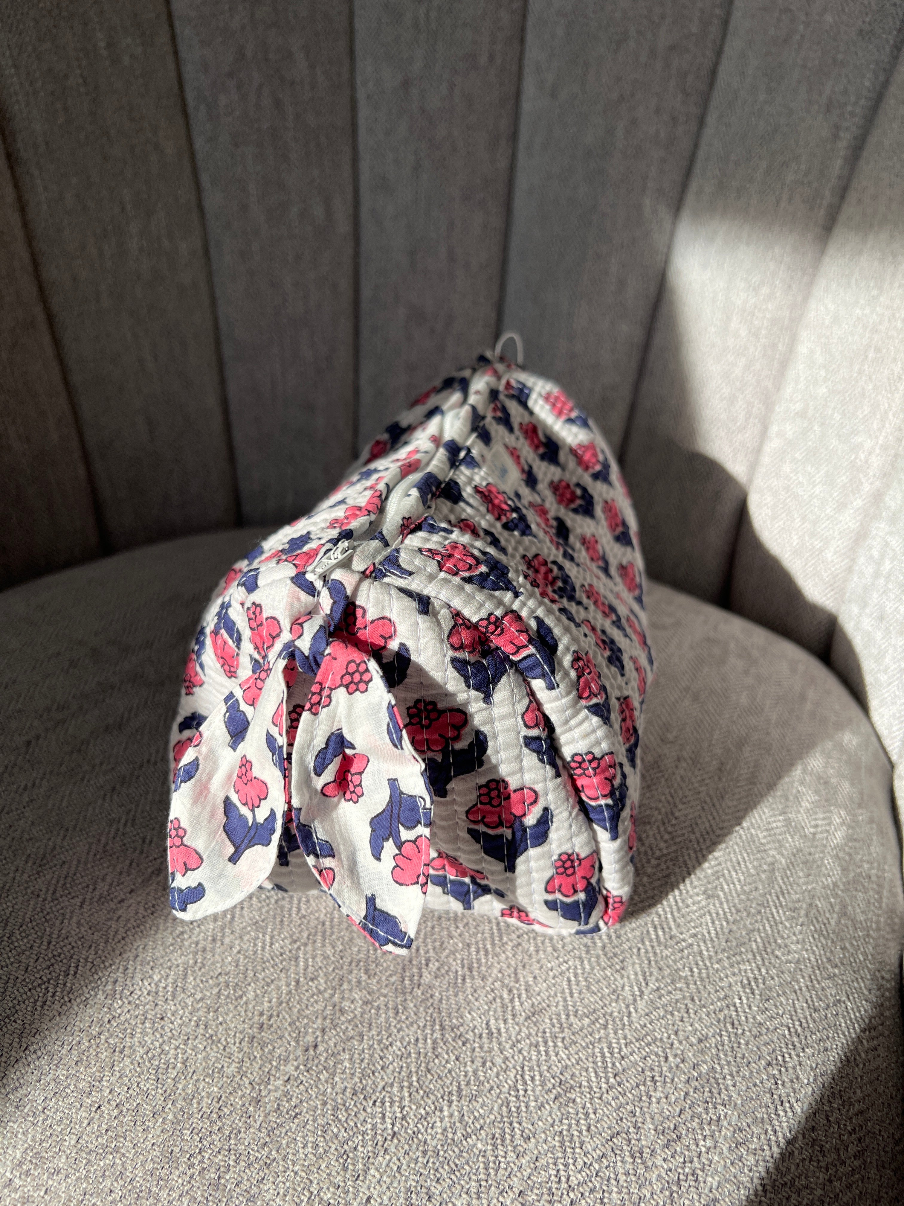 Quilted Pouch - Large - Pink Navy – Margo Boutique