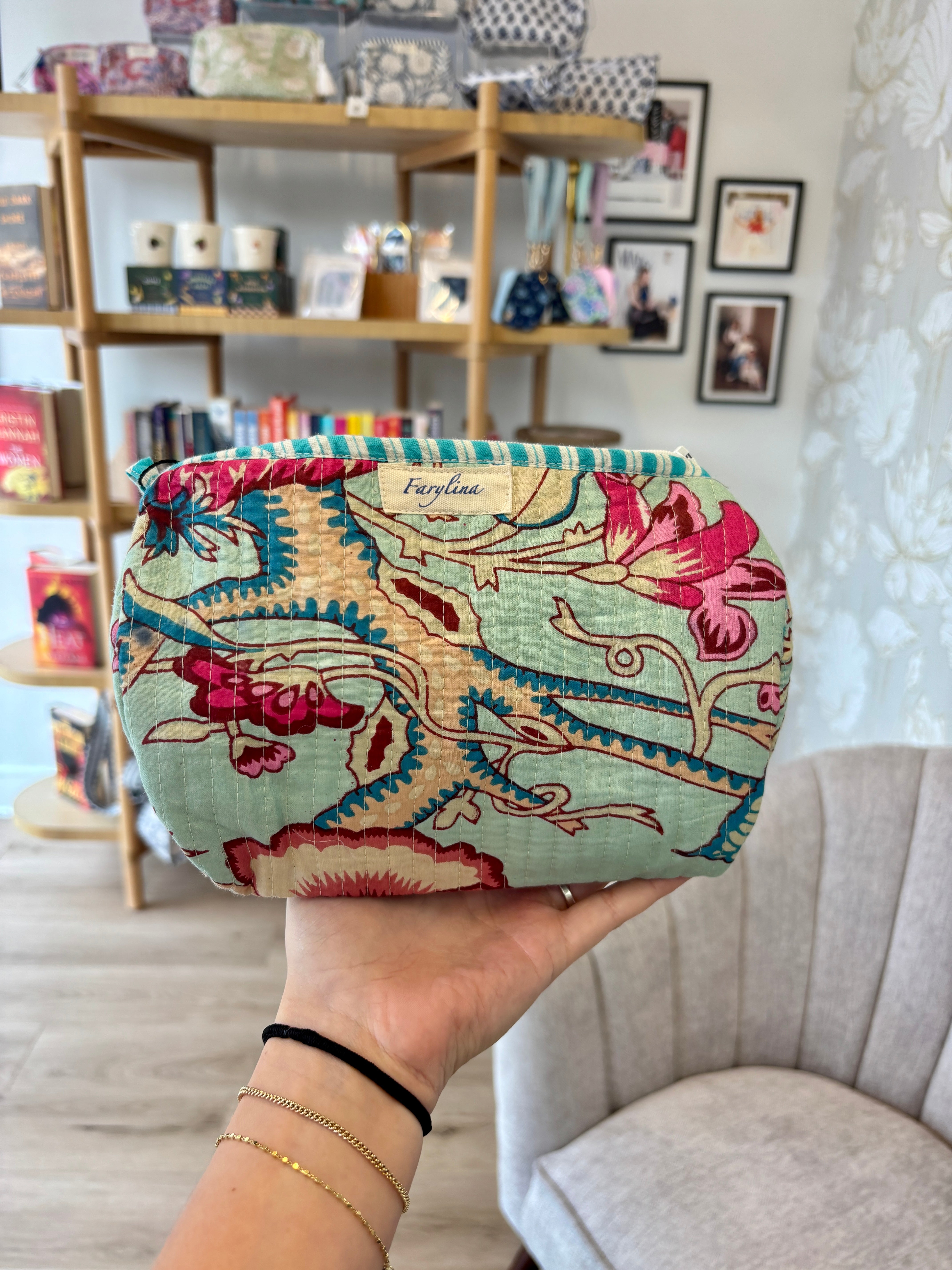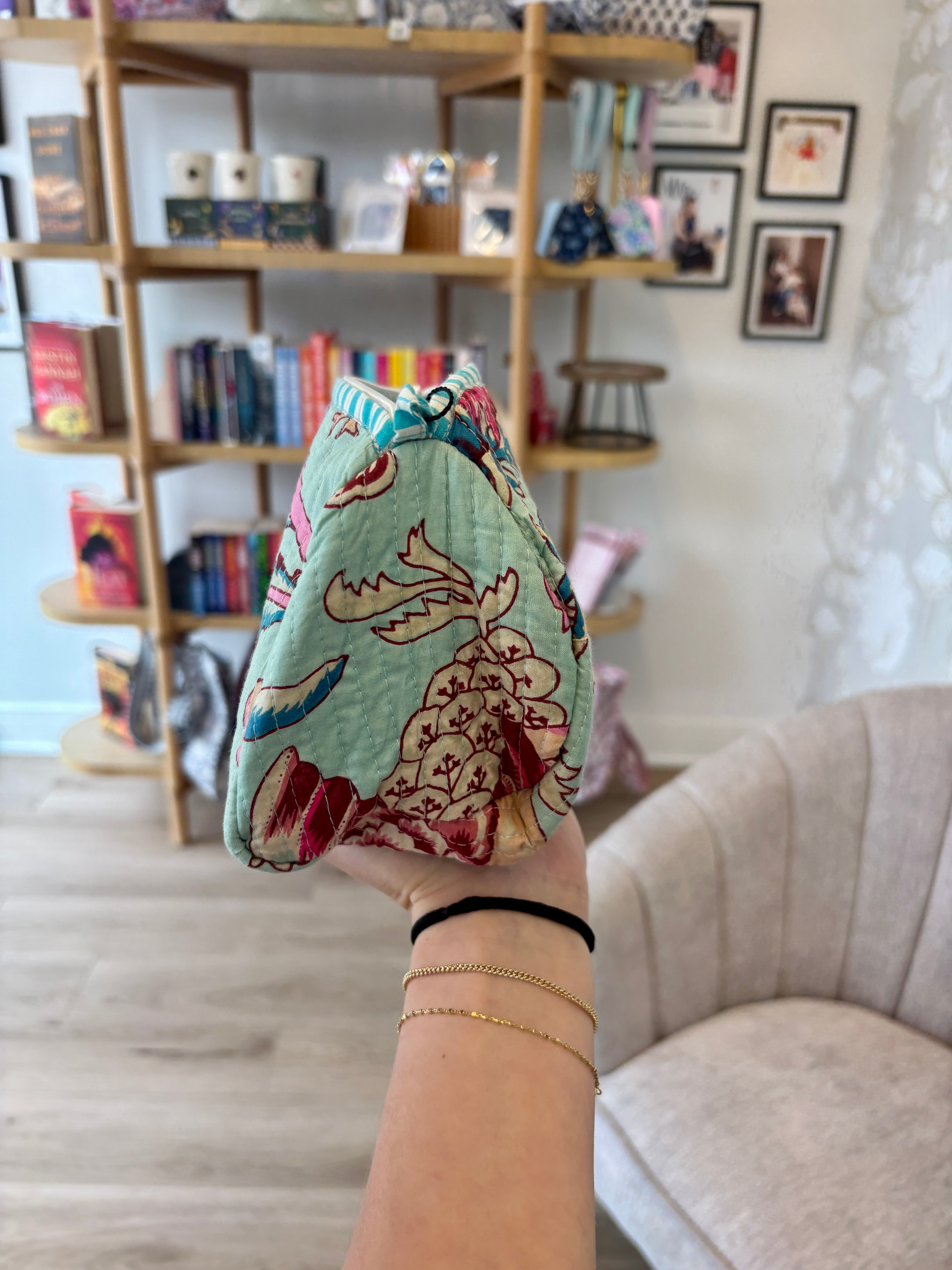 Quilted Pouch - Medium - Blue Floral – Margo Boutique