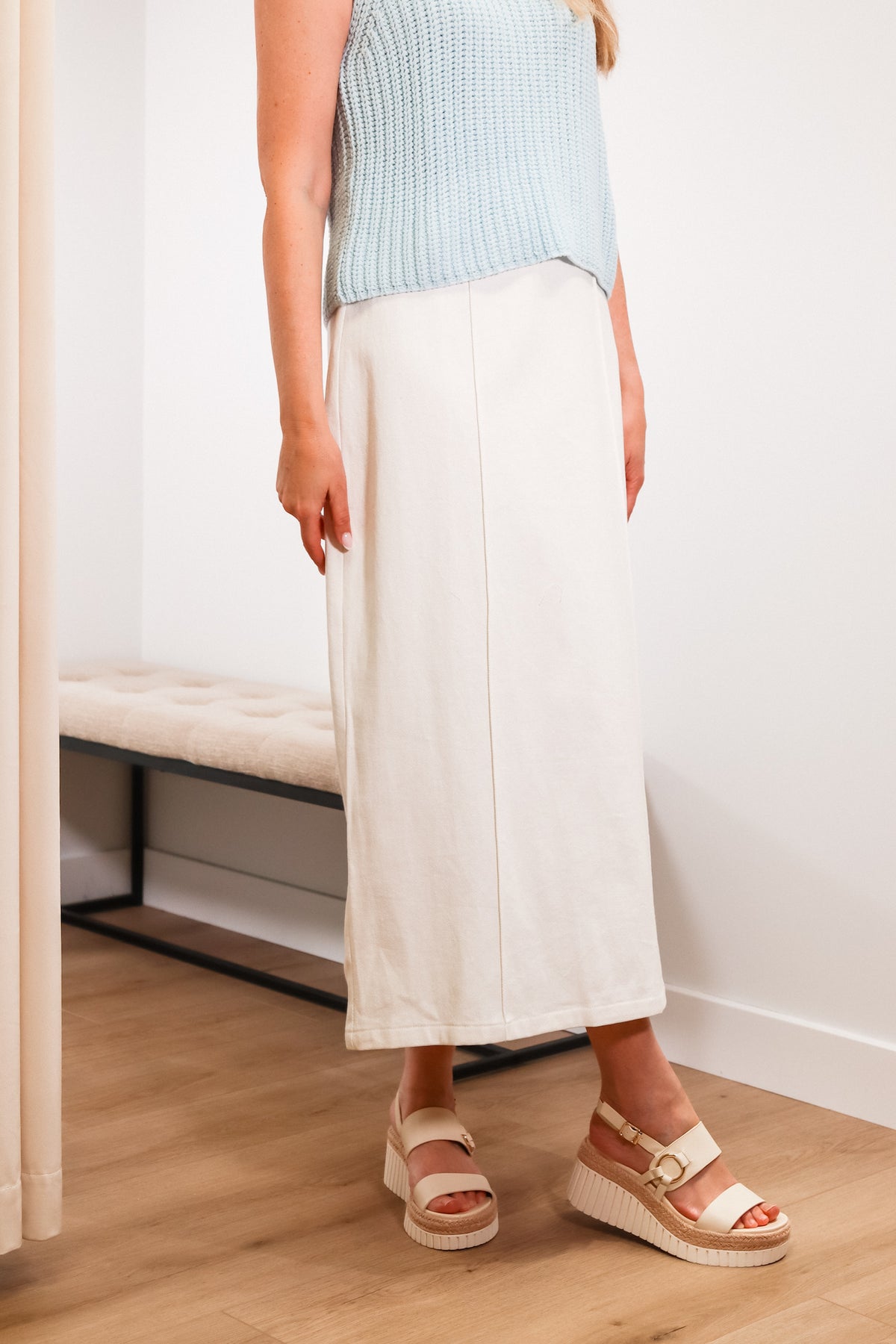 The Delilah Denim Maxi Skirt is a versatile addition to your wardrobe. With its high rise, it pairs perfectly with any of our tops, making it a go-to piece for any season. Stay stylish and comfortable all year round with this must-have skirt.