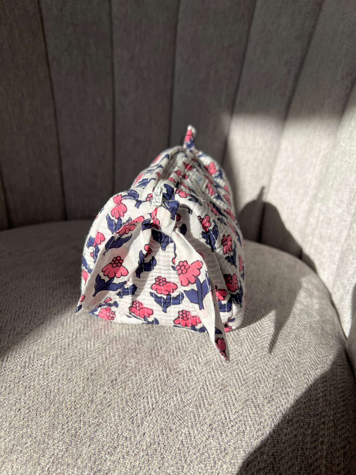 Quilted Pouch - Medium - Pink Navy