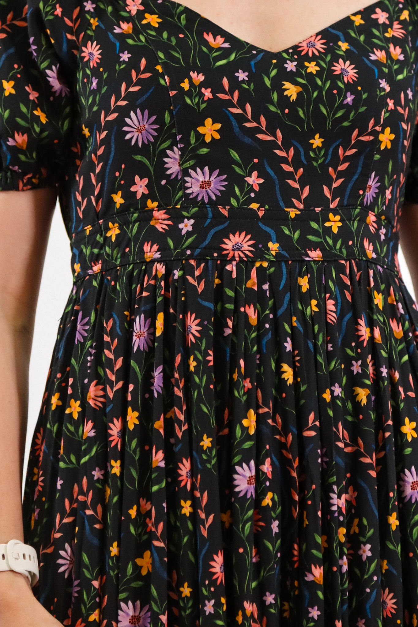 Discover effortless elegance with the Garden Party Front Cutout Maxi Dress. The V-neck and front cutout feature add a touch of modernity to the classic floral design, while the puffy sleeves and maxi length bring a timeless charm. Perfect for any occasion, this dress is made with breathable and comfortable fabric, making it a year-round staple.